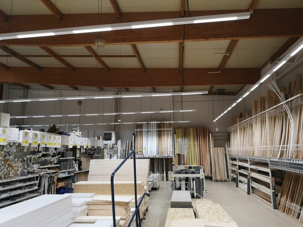 Après étude de notre BE, nous avons opté pour du chemin lumineux LED de marque Trato Lighting pour valoriser les linéaires et atteindre une excellente efficacité lumineuse (160 lumens par watt). Les lignes continues LED contribuent fortement à la baisse de la consommation énergétique du bâtiment et permettent d’obtenir des ratios de consommation au m² très performant.