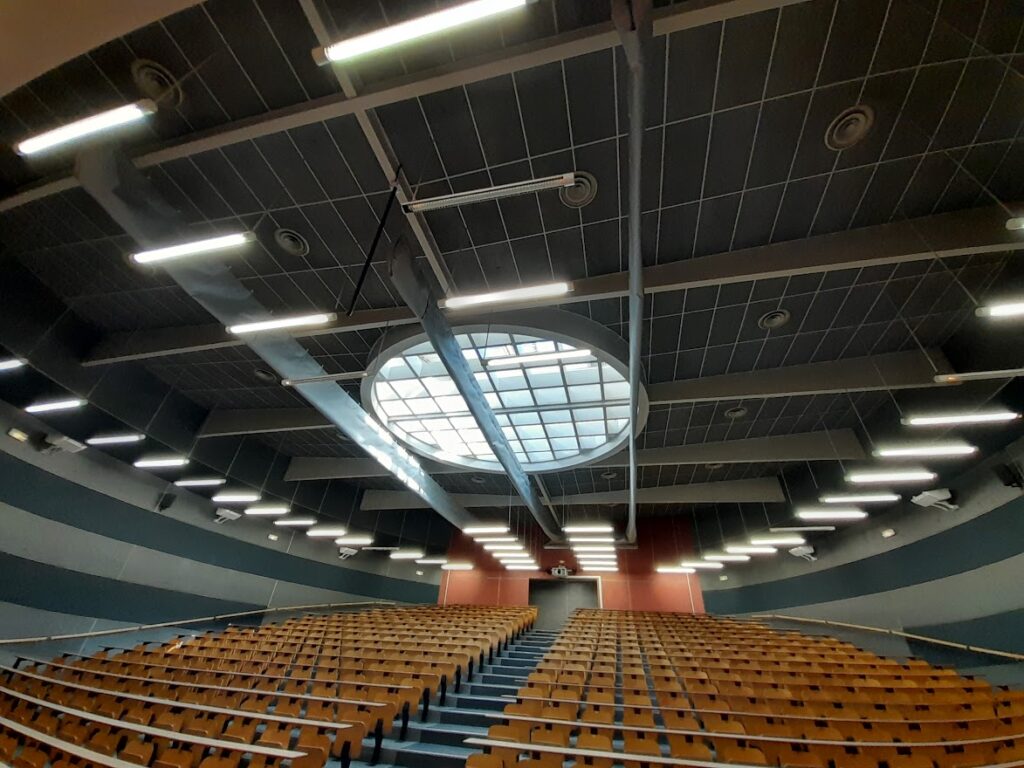 Pose de 708 appareils encastrés et spot sur rails, 116 réglettes dans les muraux et 63 appareils dans les locaux sociaux